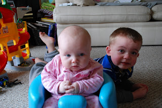 Sam has been sitting in Campbell's bumbo seat the past few days off and on since she's not in it much yet. Today he decided he was pretty sad that she was taking a turn. : ( His mean mom just giggled and captured much of it on camera. Who looks like the bigger baby to you in these pictures... Sam or Campbell?! ; )